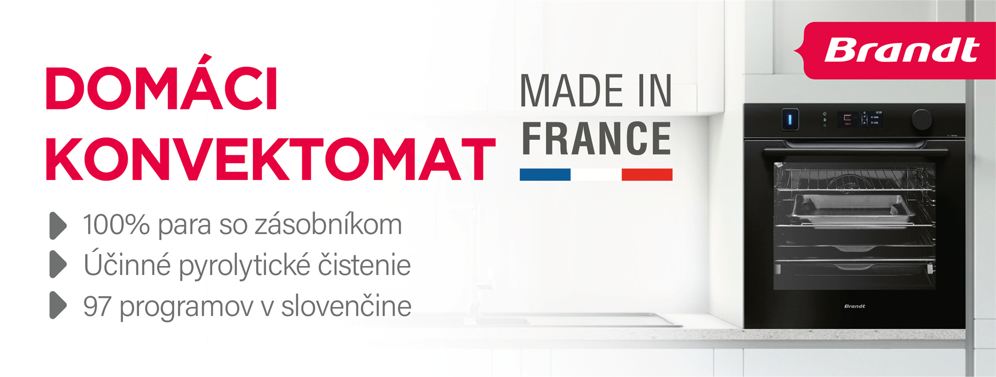 Rúra Brandt vás nadchne štýlovým podsvieteným zásobníkom na vodu s automatickým otváraním a odčerpávaním vody. Nechýba ani funkcia, ktorá vás upozorní na potrebu odstránenia vodného kameňa. S funkciou Soft Close sa dvere zatvoria plynulo a ticho a vďaka štyrom ľahko čistiteľným vrstvám skla budú dvierka vždy chladné na dotyk aj počas pyrolytického čistenia.
